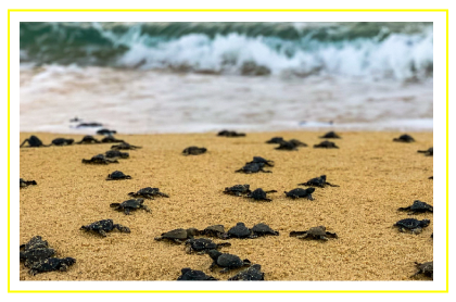 Green sea turtles hatch and journey